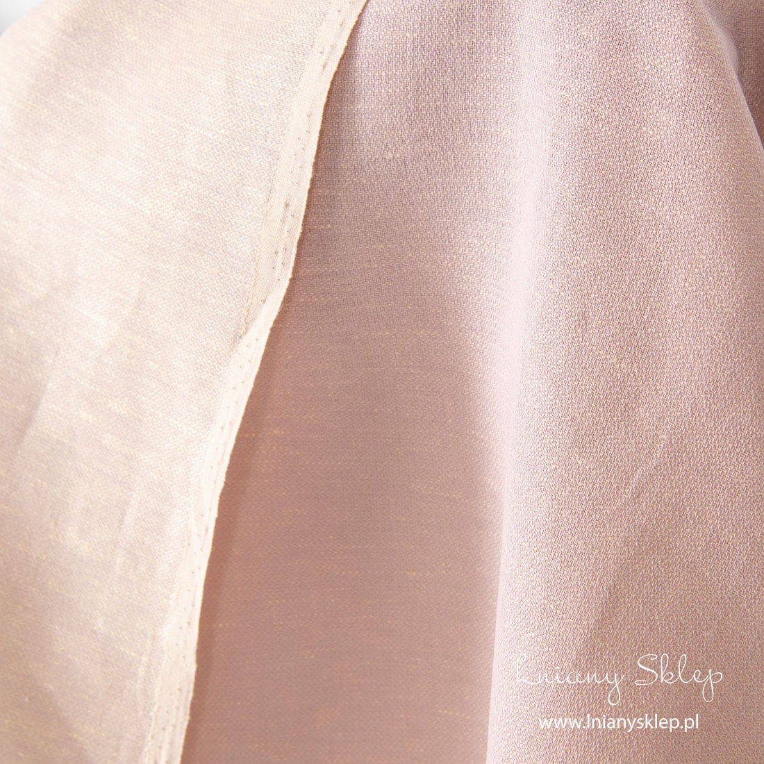 Żółto – liliowa tkanina lniana z domieszką. Tkanina dwustronna, wytkana lekko wypukłym wzorkiem z przędzy lenianej lekko żółtej i bawełnianej – liliowej. Wykorzystać można obydwie strony tkaniny. Tkanina na odzież i tekstylia domowe.