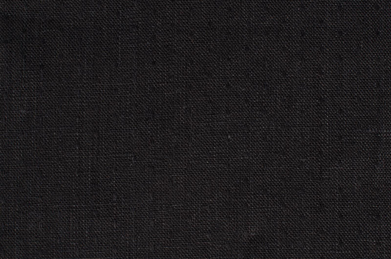 Lekka, średnio gęsta czarna tkanina lniana w drobne czarne kropki.