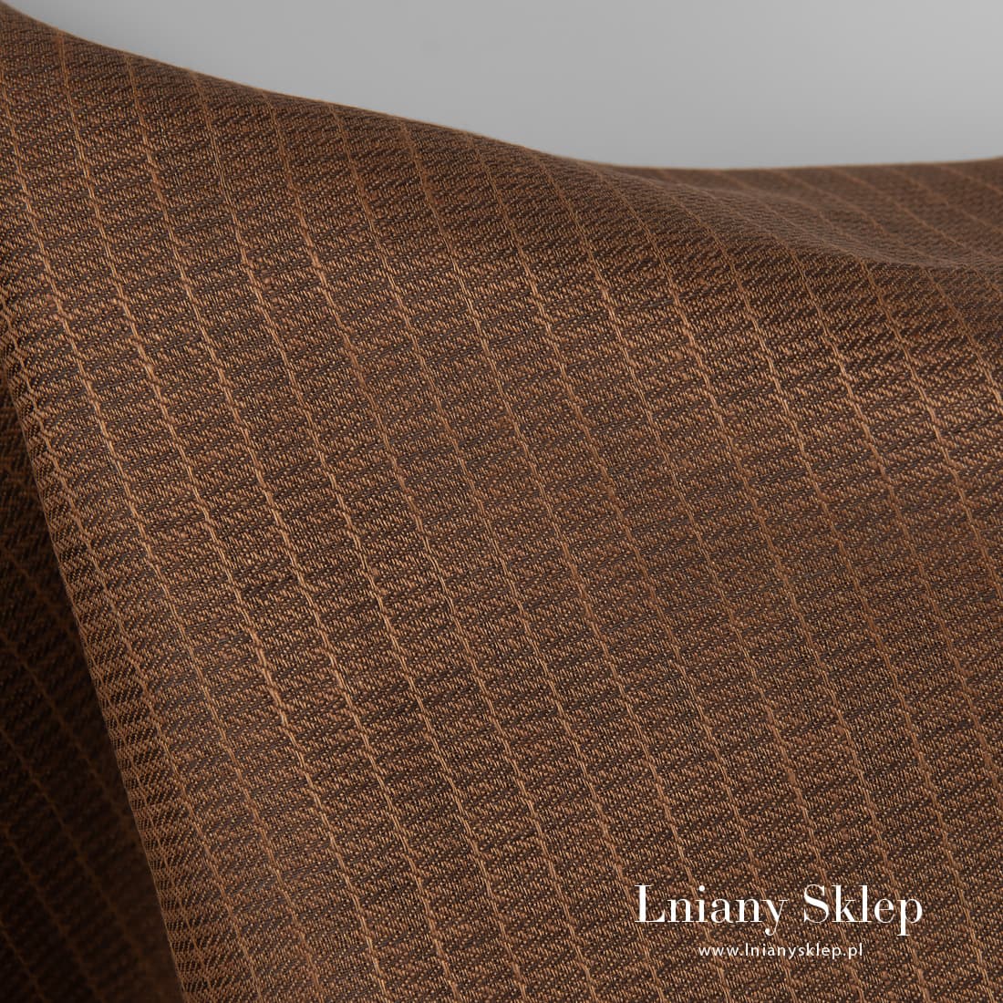 Ruda tkanina w drobny wzorek z przędzy jasnorudej i brązowej o szarym odcieniu jest mocna, gęsta, średnio gruba. Na szycie najróżniejszych tekstyliów domowych i odzieży.