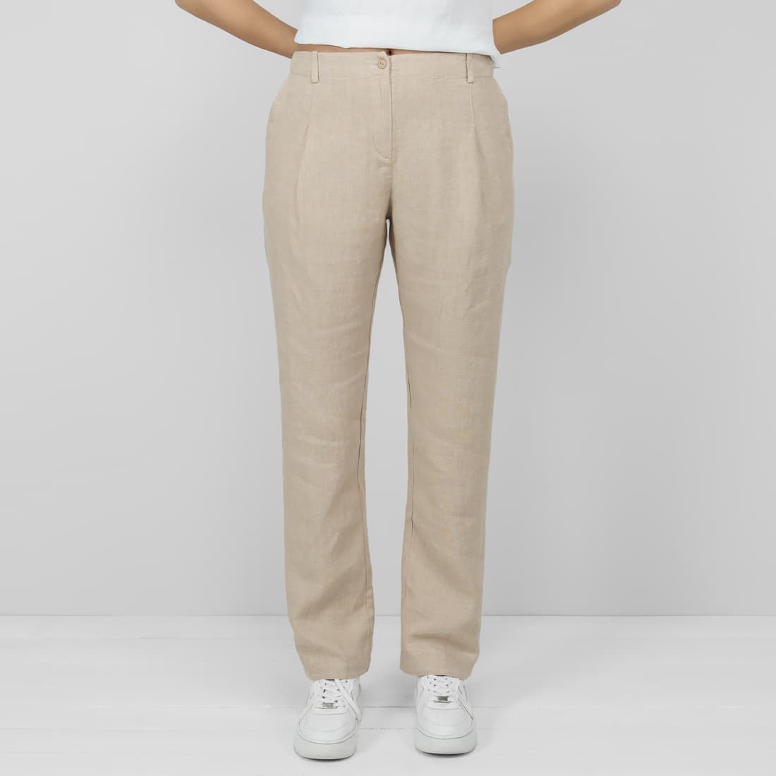 - Szczegóły: dwie kieszenie po bokach, gumka w talii, zakładki z przodu, zapięcie na guzik i zamek błyskawiczny