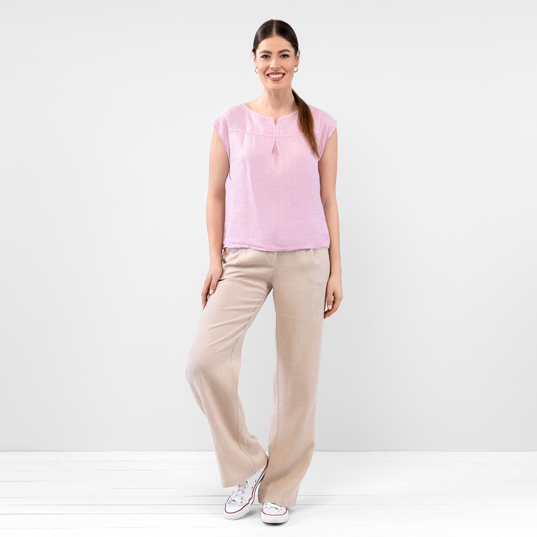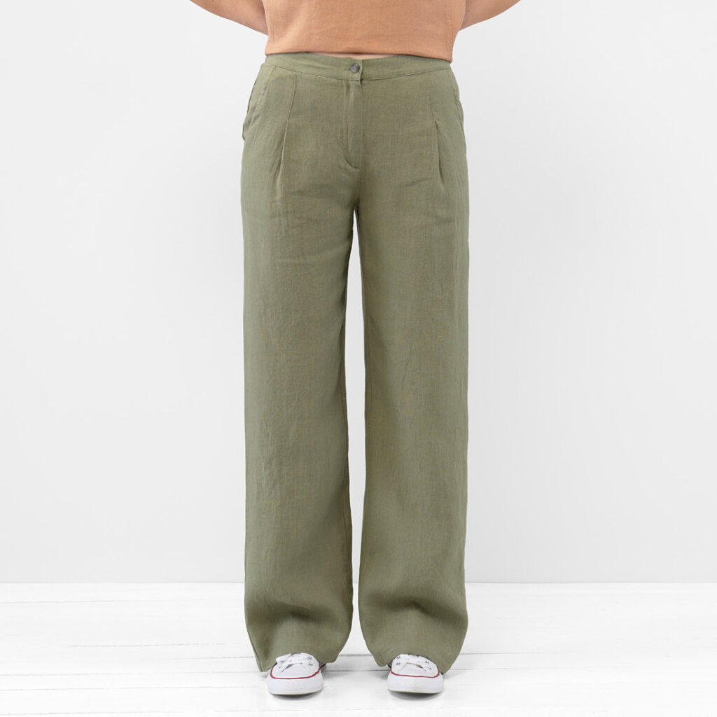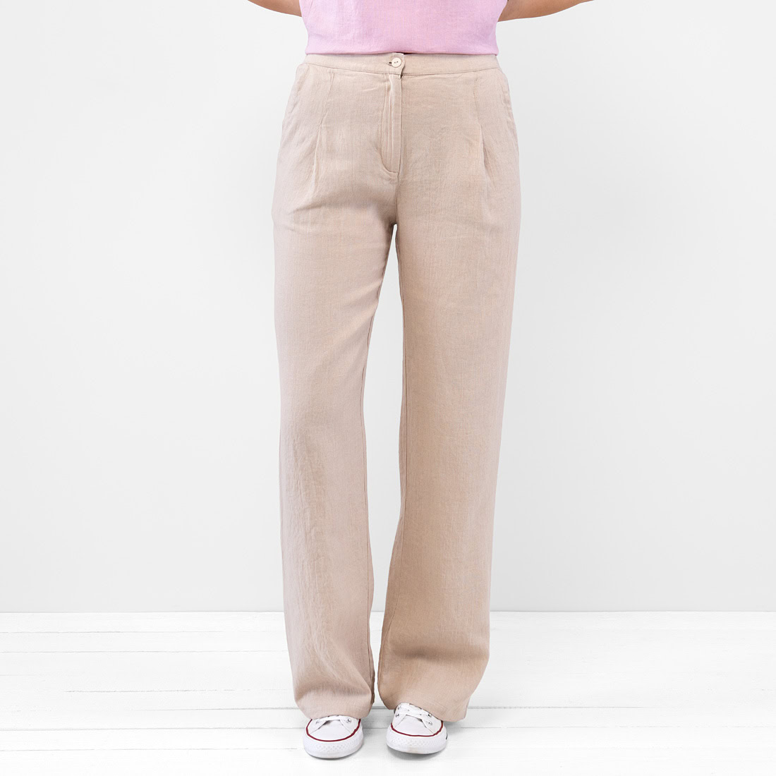 - Szczegóły: dwie kieszenie po bokach, gumka w talii, zakładki z przodu, zapięcie na guzik i zamek błyskawiczny