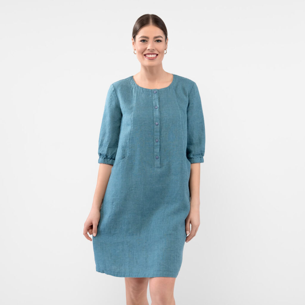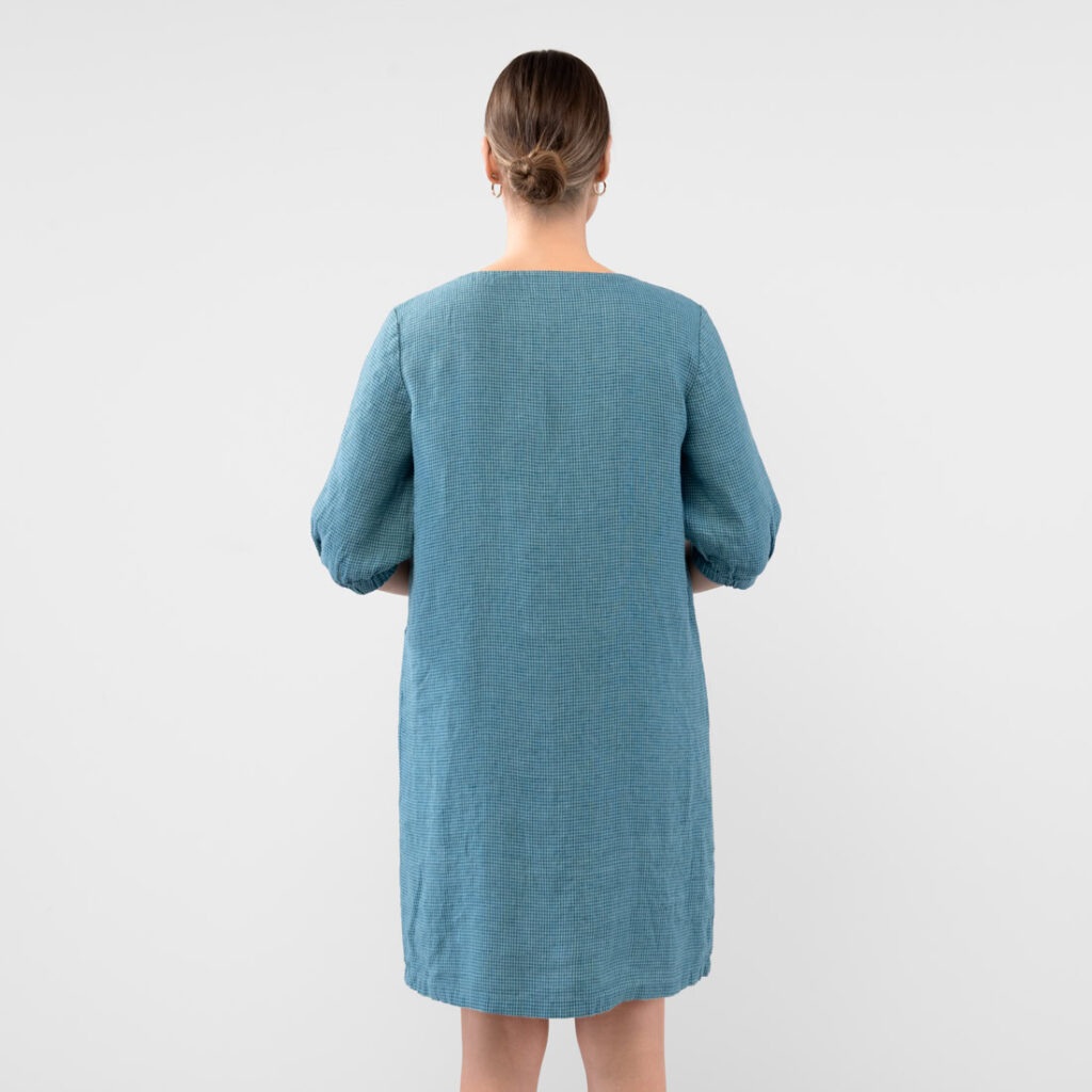 - Model produktu: prosta sylwetka, luźny krój, długość przed kolano, 3/4 bufiaste rękawy