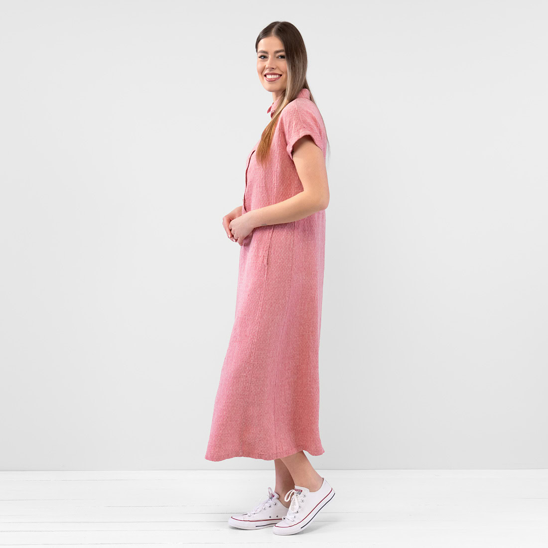 - Model produktu: fason trapezowy (litera A), luźny krój, długość maxi, krótkie rękawy