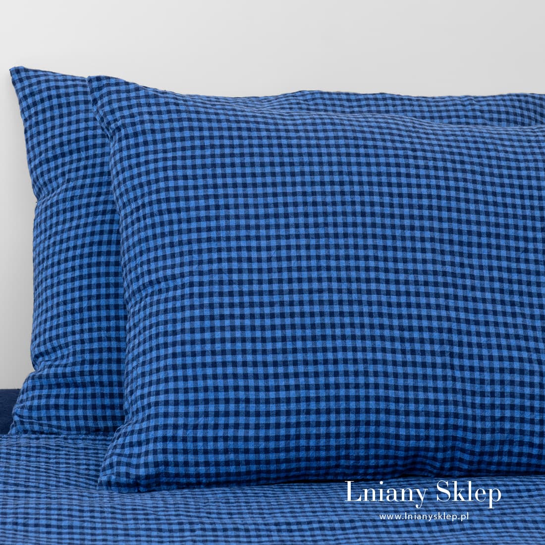 Lniana granatowa w kratkę poszewka na poduszkę KOLKA