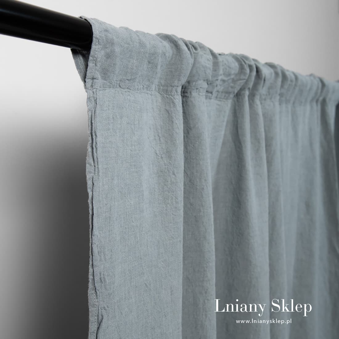 ATLANTA szara o niebieskim odcieniu zasłona lniana została uszyta z pranego, a więc mięciutkiego, lekko gniecionego po praniu lnu 100%. Po kolejnych praniach rozmiar zasłony już się nie zmieni. Zasłony idealne do sypialni – kolor uspokaja, daje poczucie lekkij ochłody. Szerokość zasłony – 285cm, dlatego bez kłopotu zasłonisz nią duże okna.